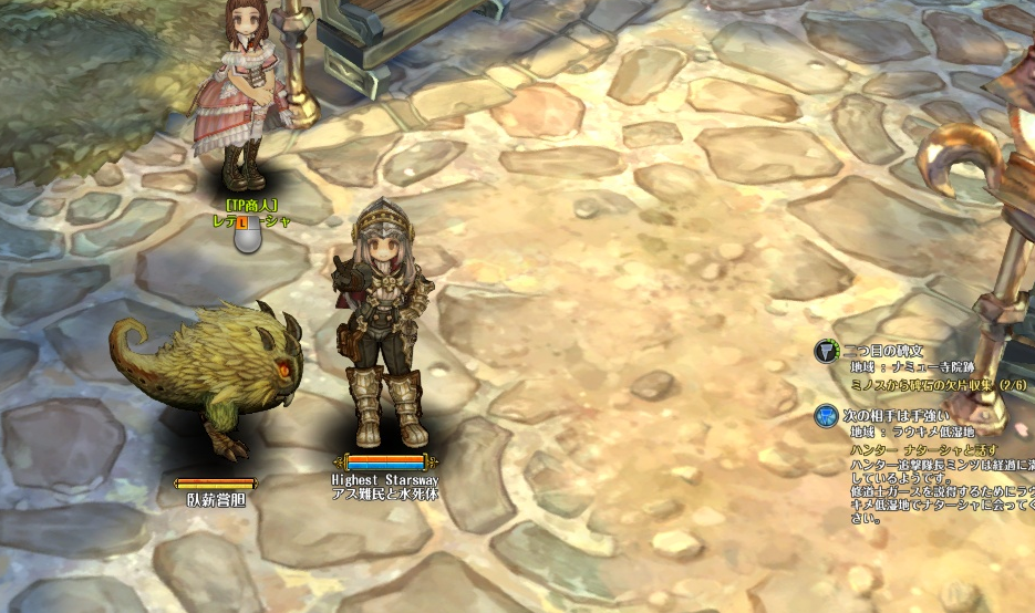 TOSをプレイし始めてはや二か月近く・・・。只管、徒歩で弓兵を続けてまいりましたが、遂に・・・、シュヴァルツライターへと転職するにあたり当該のマスター様より、乗り物が支給され、弓兵から竜騎兵への華麗な転身を遂げました!わーいわーい!